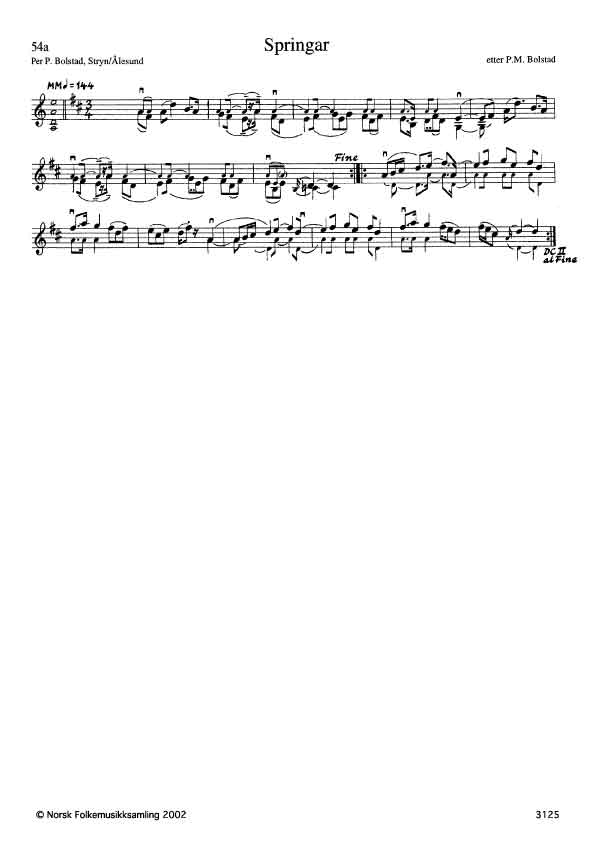 Bolstad har en del lengre strøk enn Sunde (b), særlig i 1.vek. Begge har mye løsstrengsklang, men Bolstads er ofte noe ‘lysere’ (borduntone over melodigangen).