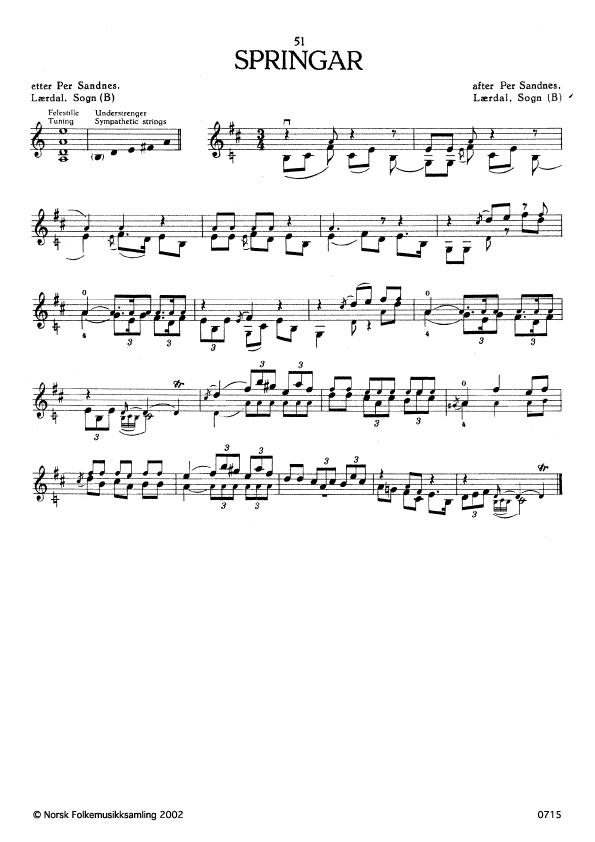 (Springar) B. 672. Oppskr. 1927. Sandnes hadde slåtten frå far sin, Ola Sandnes, som atter hadde han frå sin far.