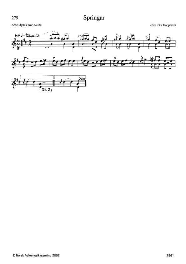 Ola Kopprvik (1888–1975) kunne mange slike gamle slåtter da Øyhus var ung. Han spilte litt fele, men mest munnspill (Bente Ingholm Hemsing),
