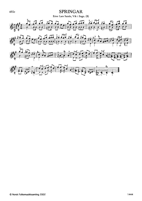 Springar. Etter Lars Sande, Vik i Sogn. B. 675, 1916. Sande lærde slåtten av Sjur Berge, Balestrand.