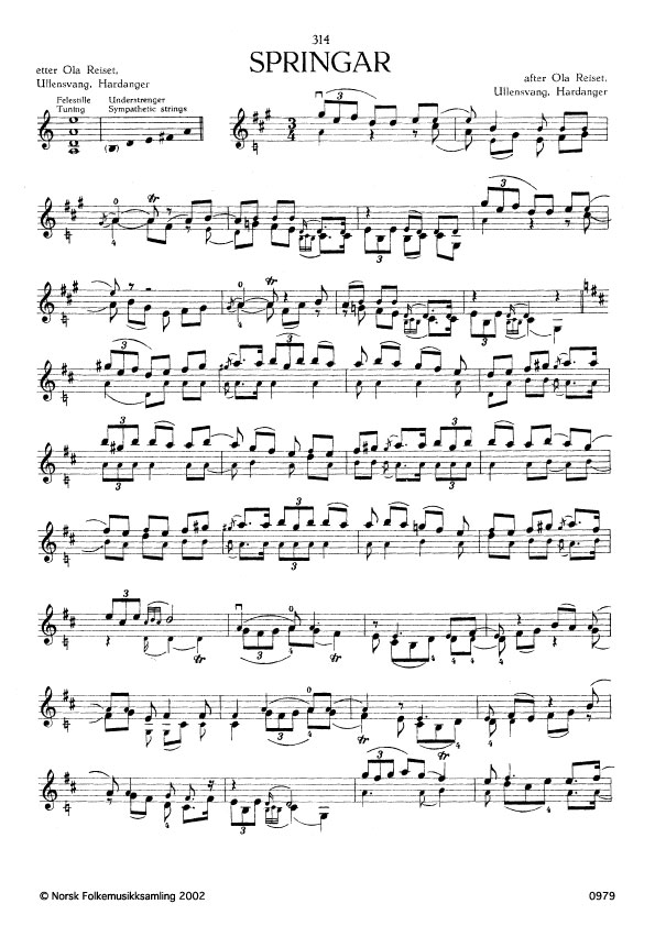 (Springar) B. 626. Oppskr. 1917. Reiset hadde lært slåtten av far sin, Nils Reiset, Ullensvang, i 1860-åra.