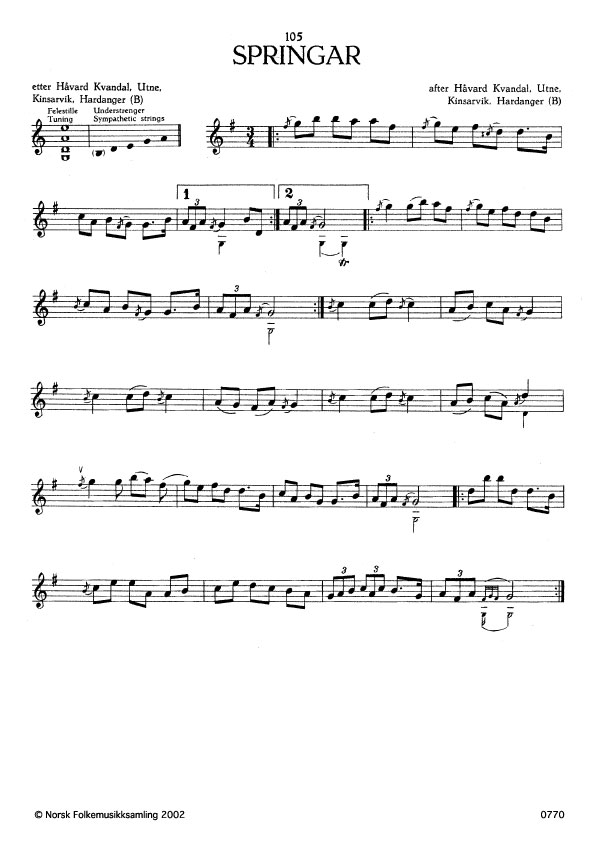 (Springar) B. 2134. Oppskr. 1936. Ola Håstadbø, Granvin, Hardanger, skal ha laga slåtten.