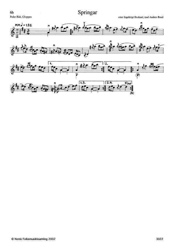 Jf Ryssdal a-2262 nr 26, springar, Anders Reed etter Magne Maurset, temmelig lik Råds form, men med ei takt mer i avslutningen av 2.vek.