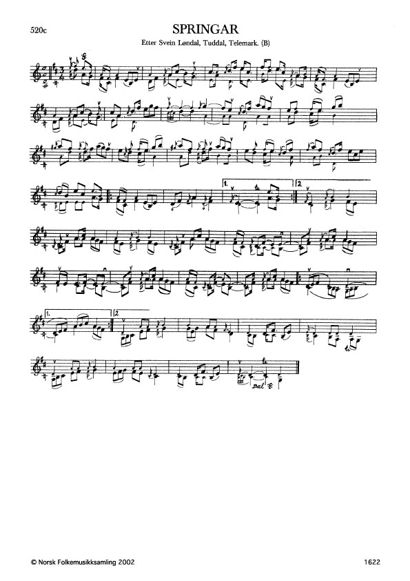 Springar. Etter Svein Løndal, Tuddal, Telemark. B. 1148, 1937. Løndal lærte slåtten av Ola Sudbøen, Tuddal, i 1876.