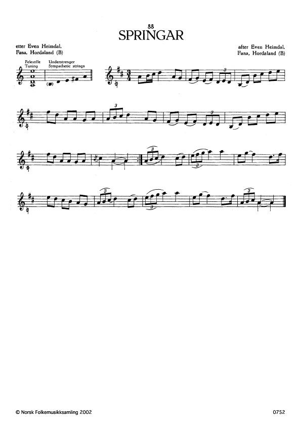 (Springar) B. 1047. Heimdal hadde lært slåtten av mor si, som hadde han etter Hans Milde, Fana, Hordaland.