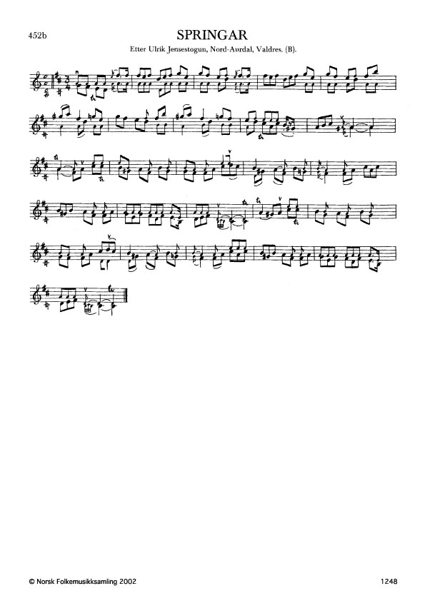 Springar. Etter Ulrik Jensestogun, Nord-Aurdal, Valdres. B. 434, 1911. Jensestogun lærde slåtten av Bendik i Nøen, Nord-Aurdal, i 1868.