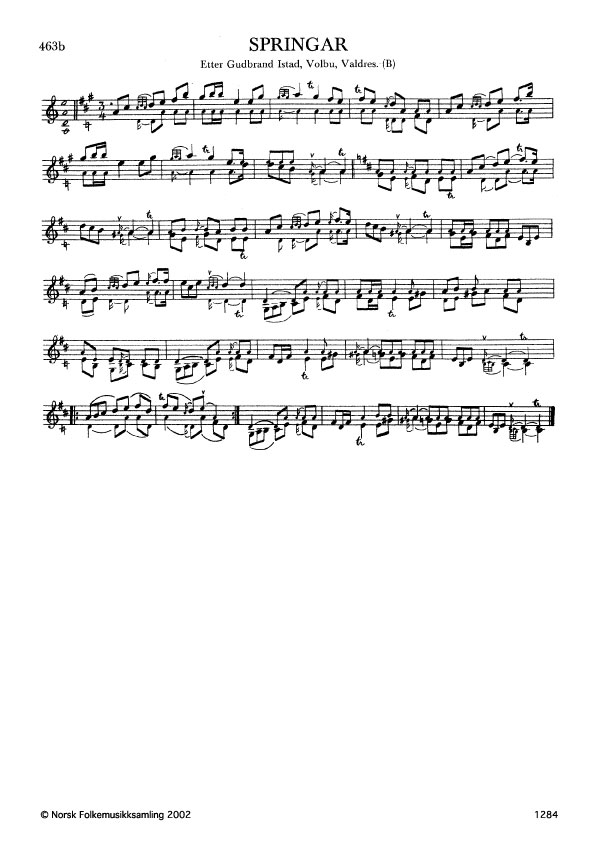 Springar. Etter Gudbrand Istad, Volbu, Valdres. B. 346, 1912. Istad lærde slåtten av Halvor Skatrud, Øystre Slidre, i 1860.