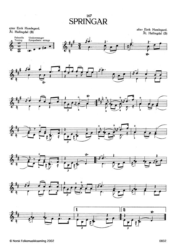 (Springar) B. 1303. Oppskr. 1935. Humlegard hadde lært slåtten av Halvor Humlegard, Ål, Hallingdal.