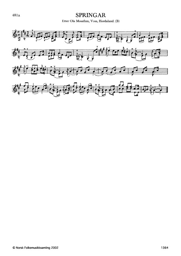 Springar. Etter Ola Mosafinn, Voss, Hordaland. B. 566, 1908.