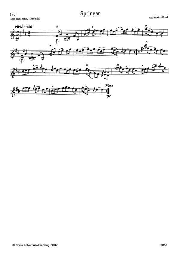 Melodigangen følger mønstret fra andre utgaver i Reed-tradisjon, men strøkføringa viser forskjeller.