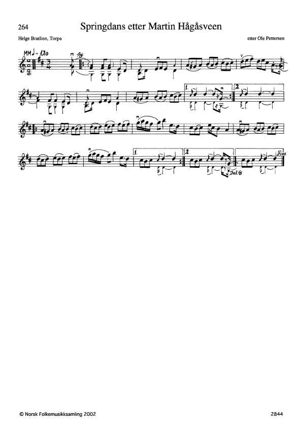 Slåtten går trolig tilbake på en noteoppskrift i organist Skjeppestads notesamling på Land Museum. Mye av stoffet i denne samlingen er fra Søre Land, der Skjeppestad holdt til. Ole Pettersen var en av dem som spilte låter etter Martin Hågåsveen. Oppskriftene er gjort fra 1916 og utetter (Td 2845).