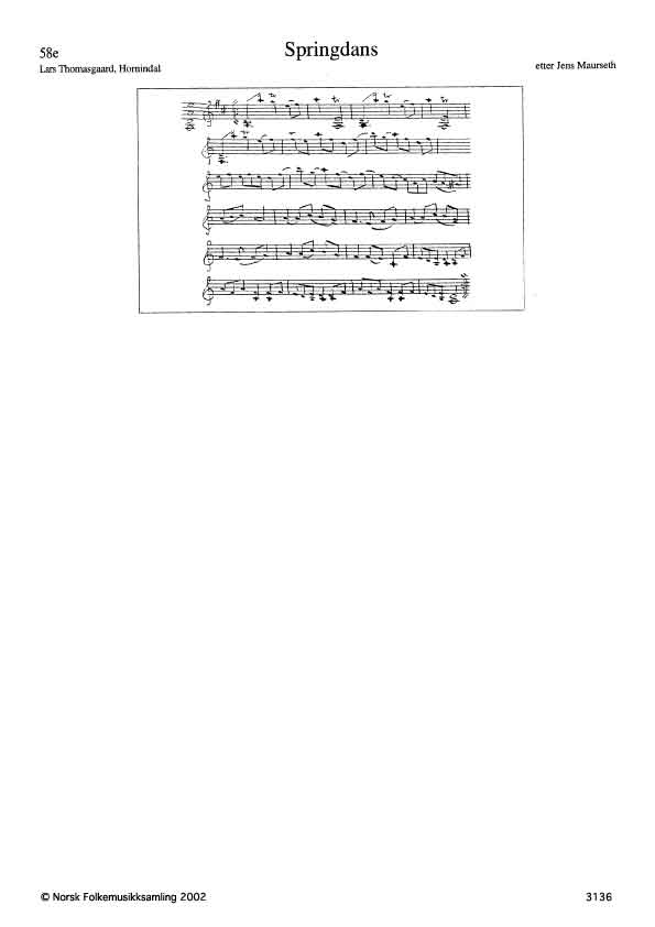 Feilnotasjon av basstreng. Kommentaren "Hele springdansen en repris" antyder at slåtten ble spilt rett gjennom uten repetisjon av vekene. I deler av 2.vek forskyves melodigangen i forhold til øvrige kjente utgaver. Glipp?