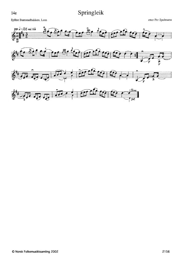 Siste takt i hver frase (t. 4, 8, 13 og 18) strekkes ut. Notert g' i takt 9 og 14 gripes trolig med 2. finger ("Sigurd Eggen-teknikk") som skiftes til 3. finger på notert g' i følgende takt (jf. nr. 14 a).