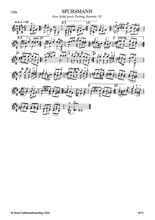 Spursmann. Etter Hellik Juveli, Flesberg i Numedal. N. 1978. Td. 1534. Spursmann = belargut. Slåtten er i form etter Anders Ødegaarden (1871-1943). Jfr. band 1 nr. 105.