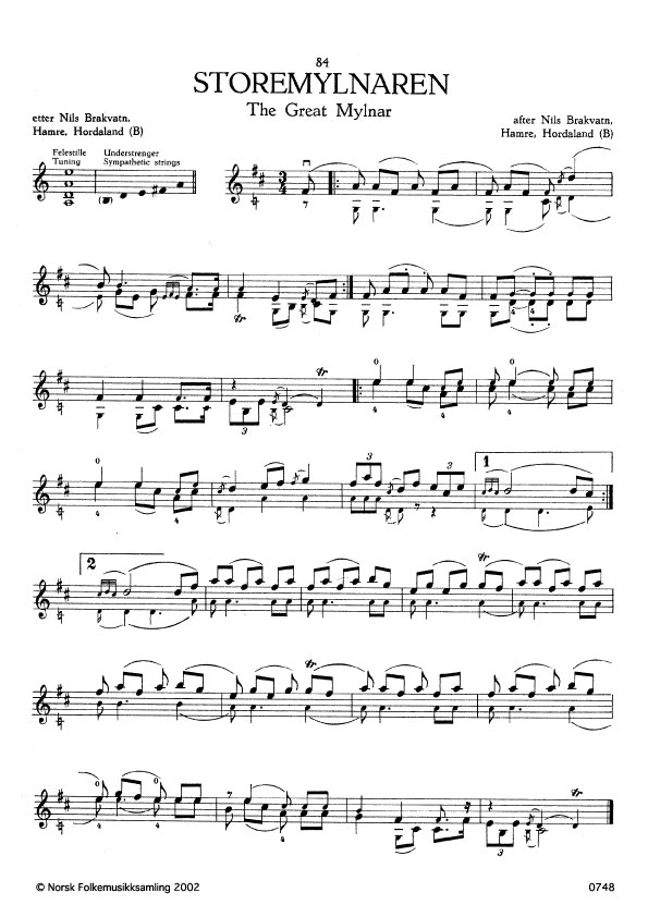 (Storemylnaren) B. 847. Oppskr. 1927. Brakvatn hadde slåtten etter Johannes Vollertsen, Hamre, Hordaland. Det er ein slått etter Martinus Gjeldsvik, Lindås, Hordaland, som var mykje saman med Ole Bull og Myllarguten i 1850-åra. Storemylnaren, namn på Myllarguten.