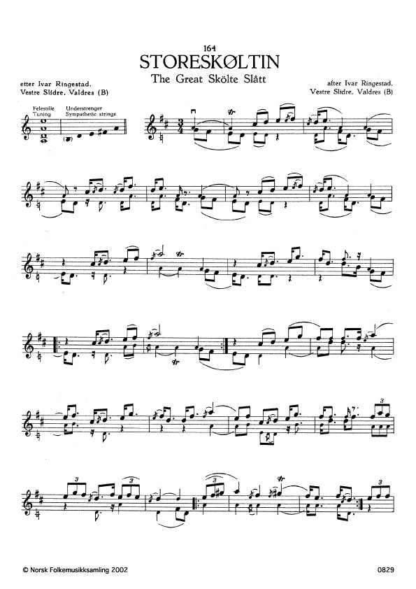 (Storeskøltin) B. 1153. Oppskr. 1934. Ringestad hadde slåtten etter Jørn Ringestad (Røn), Vestre Slidre, Valdres, i 1890-åra. Denne hadde lært han av sambygdingen sin, Ola Haugset. Slåttenamnet er etter ein kardansar frå Skølte, Hegge, Øystre Slidre. Slåtten kjem inopå "Marta Onstad", sjå B. s Ola R. Midtbø, Variantar, s. 27.