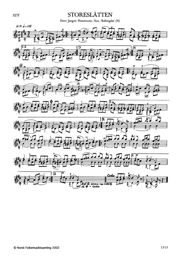 Storeslåtten. Etter Jørgen Husemoen, Nes, Hallingdal. N. 1978. Td. 539.