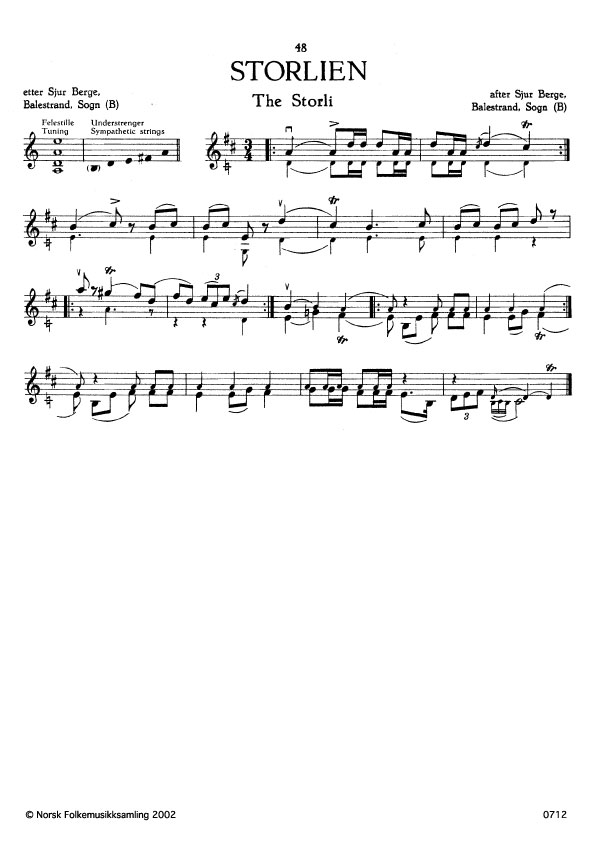 (Storlien) B. 667. Oppskr. 1917. Berge hadde lært slåtten av Per Berge, Kyrkjebø, Sogn, i 1870-åra.