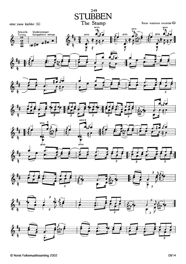 (Stubben) G. 553. Oppskr. 1938. Slåtten er opphavleg etter Hans Smeland, Seljord, Telemark. Så har E. Groven teke litt frå kvar av spelemennene Olav Groven, Åsmund Groven, Lårdal, og Rikard Gøytil, Rauland, Telemark. Slåtten har litt sams med "Vårfuglen".