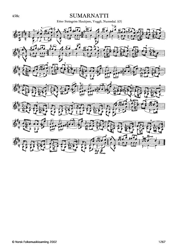Sumarnatti. Etter Steingrim Haukjem. Veggli, Numedal. Ø. 146, 1926. Haukjem lærde slåtten av Halvor Kaasin, Nore, og han att av Gisle Marumsrud, Tinn, Telemark.