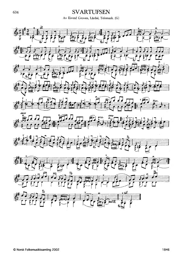 Svartufsen. Av og etter Eivind Groven, Lårdal, Telemark. G. 1865. Td. 1922. Transkribert etter opptak innspela i 1949.