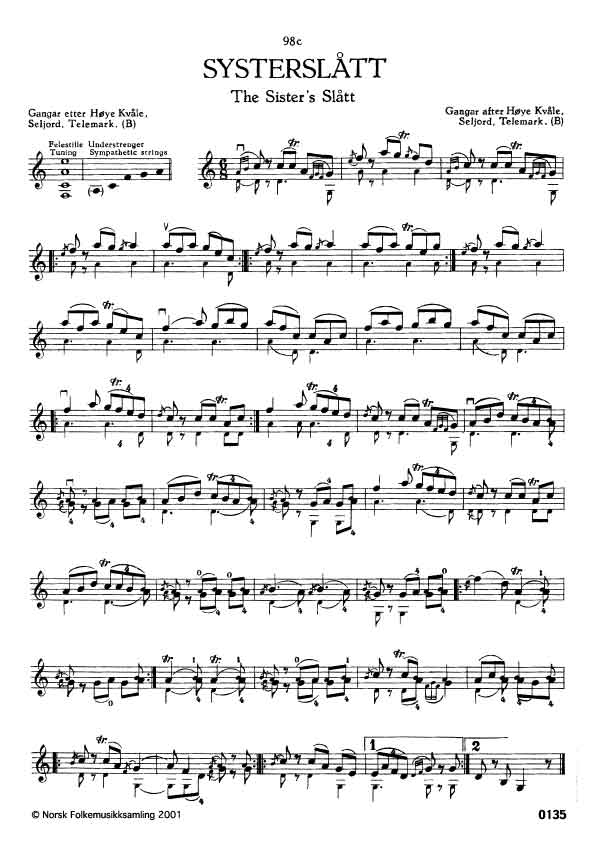 (Systerslått) B. 2450. Oppskr. 1950. Kvåle lærde slåtten av Kjetil Håvardson, Møsstrond, Rauland, Telemark i 1890, og denne hadde han frå far sin, Håvard Gibøen, Rauland.