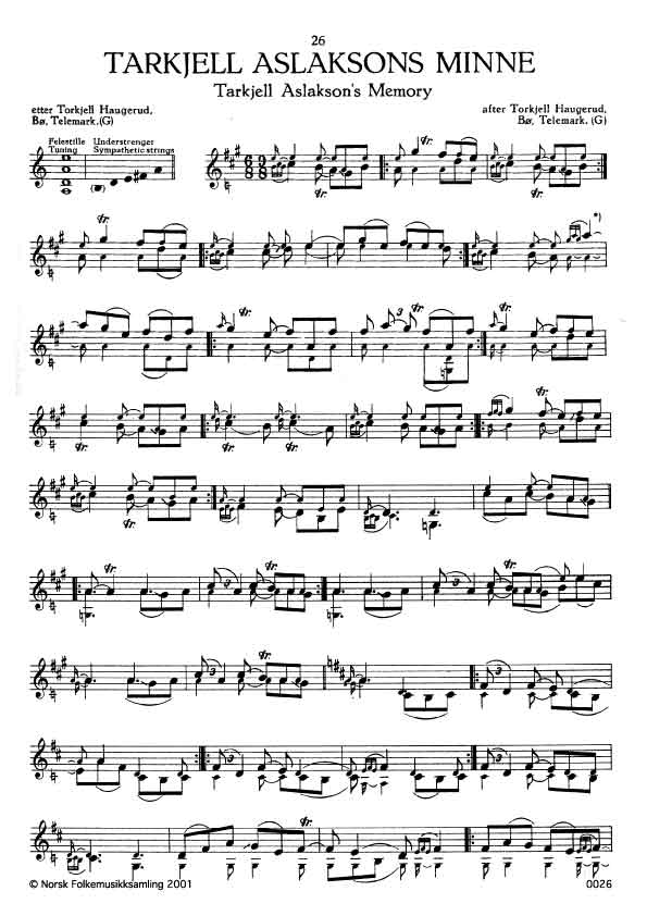 (Tarkjell Aslaksons minne) G. 947. Oppskr. 1935. Slåtten er frå Setesdal og har fått namn etter spelmannen Tarkjell Aslakson Austad, Bygland. Jfr. Akhus nr. 3.