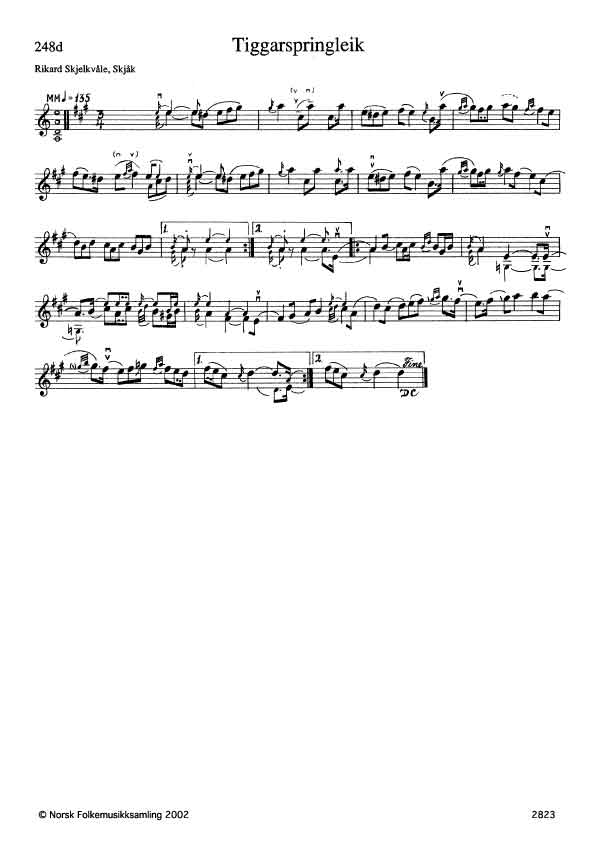 Lært av Fel-Kari, Fel-Jakups datter. "Fel-Jakup brukte å spela denne slåtten i bryllaup når han tykte at det vart for dårleg med danse' og for lite stemning i huset. Da måtte dem te med lite meir brennevin."