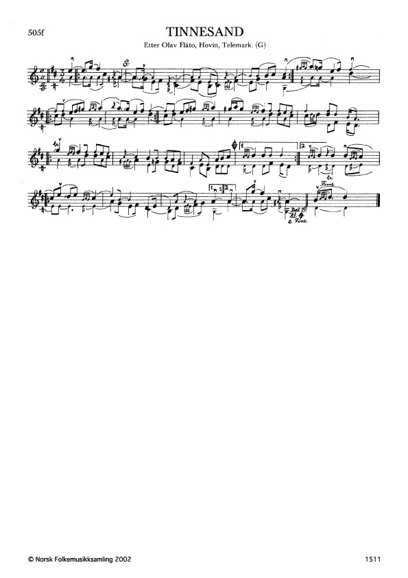 Tinnesand. Etter Olav Flåto, Hovin, Telemark. G. 1170, 1960. NRK magn. 1768. Tinnesand er det gamle navnet på byen Notodden.