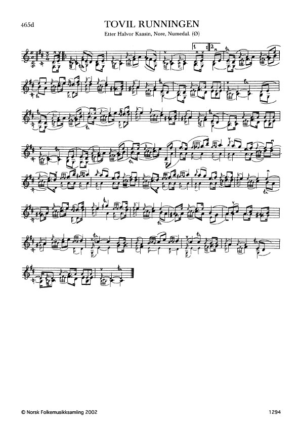 Tovil Runningen. Etter Halvor Kaasin, Nore, Numedal. Ø. 424. Kaasin lærde slåtten av Svein Løndal, Tuddal.
