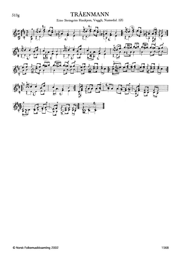 Tråenmannen. Etter Steingrim Haukjem, Veggli, Numedal. Ø. 157, 1924. Jfr. G. 1184. Slåtten er ein sjølvstendig slått som er fletta inn i den store forma av Bøheringen.