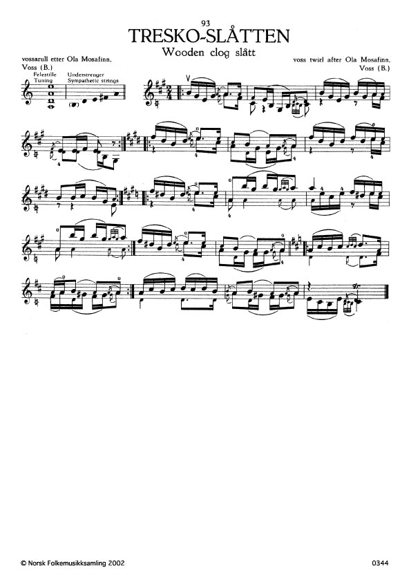 (Tresko-slåtten) B.N.SI. 40. Oppskr. 1908. Mosafinn lærde slåtten av Anders Berge, Voss i 1838.