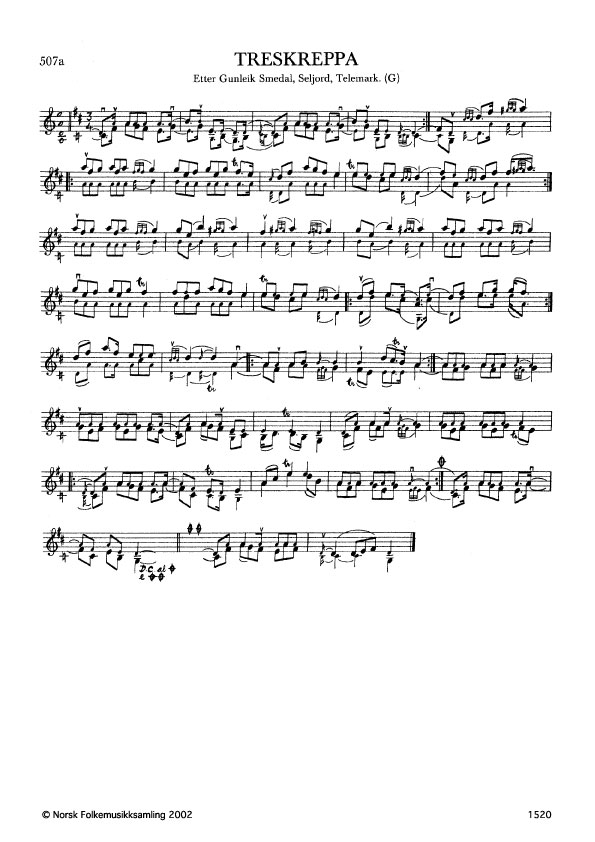 Treskreppa. Etter Gunleik Smedal, Seljord, Telemark. G. 564, 1921. Slåtten er truleg etter Olav Naper, Fyresdal.
