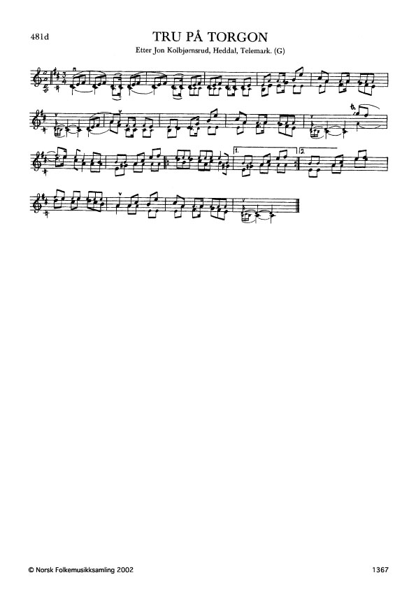 Tru på Torgon. Etter Jon Kolbjørnsrud, Heddal, Telemark. G. 436, 1922. Torgon = kvinnenamn. Stev: "Tru på Torgon, du skal få liggja med meg kvar einaste morgon".