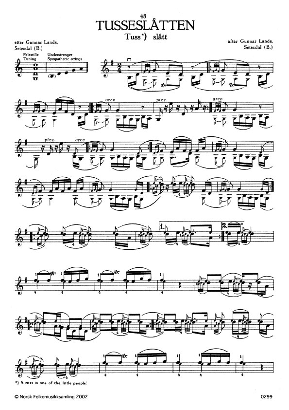 (Tusseslåtten) B. 25. Oppskr. 1928. Slåtten er ein gangar, og er i slekt med Kivlemøyslåttane.