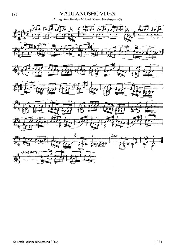 Vadlandshovden. Etter Halldor Meland, Kvam, Hardanger. G. 1481, 1964, etter privatopptak. Laga av Halldor Meland, som budde på Hovden under garden Valland i Kvam i seinare år. Slåtten kan minne om Sellanden (Lise-Sjur). Jfr. band 2 nr. 113. Sjå: Jon Bleie: Halldor Meland, Oslo 1976 s. 60.