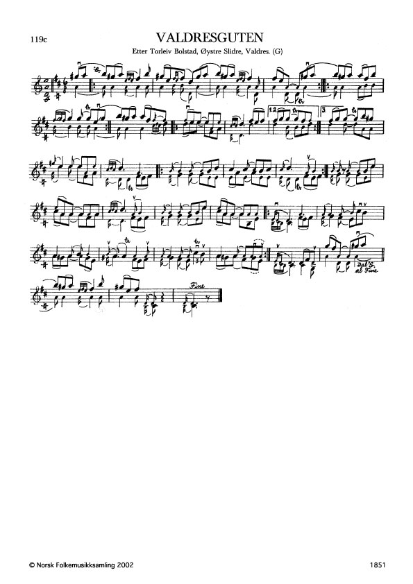 Valdresguten. Etter Torleiv Bolstad, Øystre Slidre, Valdres. G. 1510, 1964. NRK magn. 52984. Jfr. band 1 nr. 118.