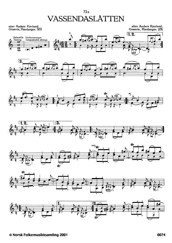 (Vassendaslåtten) Ø. 337. Oppskr. 1948. Kjerland hadde truleg slåtten etter far sin, Severin K. Nr. 72a og b er variantar.