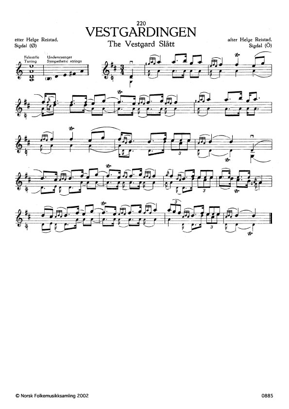 (Vestgardingen) Ø. 173. Oppskr. 1933. Reistad hadde slåtten etter gamle spelemann i Sigdal. Fyrste taket liknar på den svenske "Hvila vid denne källa" som er tillagd Bellman. Jfr. Nordbø 33.