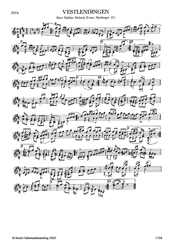 Vestlendingen. Etter Halldor Meland, Kvam, Hardanger. G. 1492, 1964. Slik spela Halldor slåtten i seinare år. Jfr. band 5 nr. 322. NRK magn. 53343.